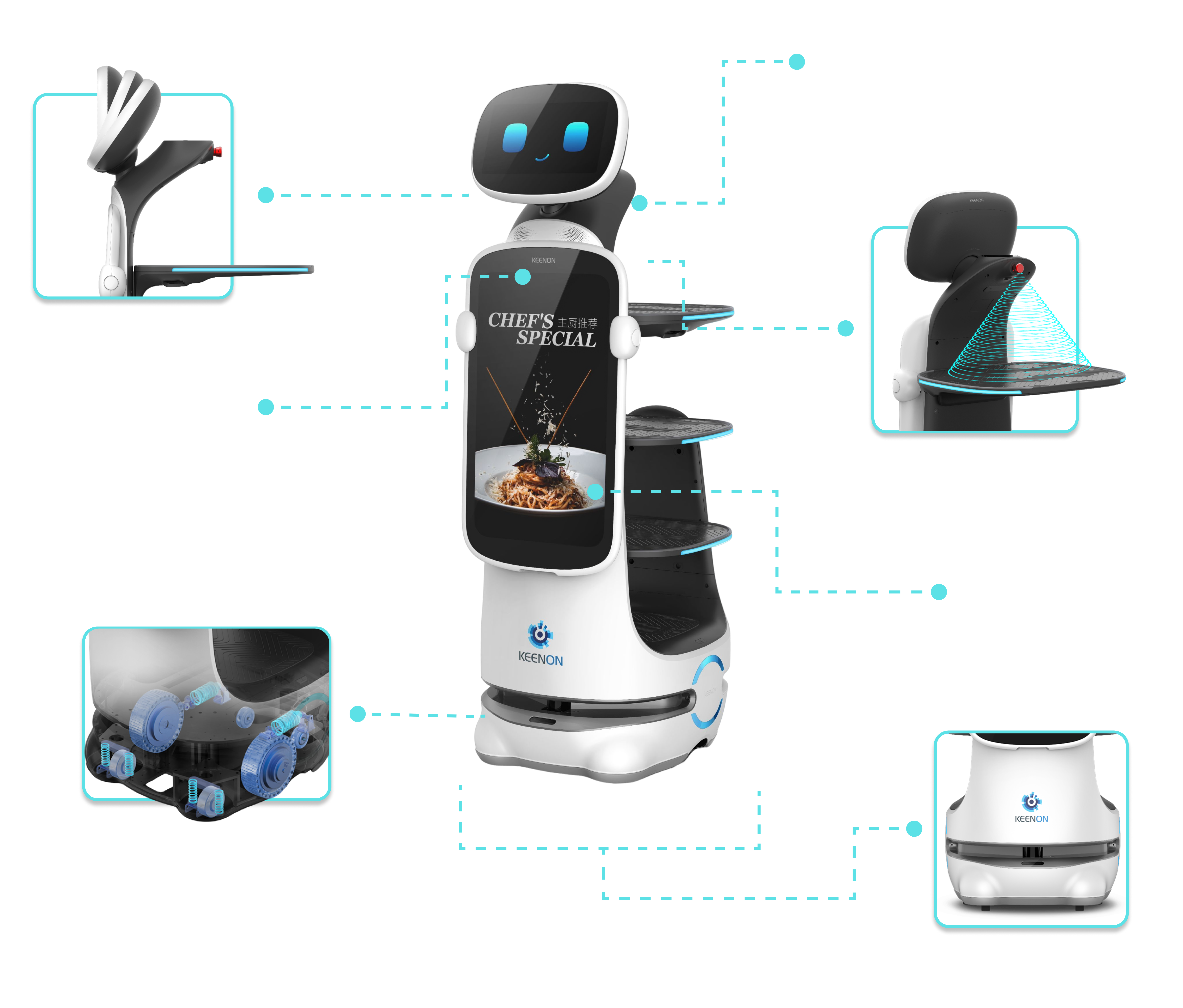 • Kellner werden von physisch belastenden Tätigkeiten wie dem Transport schwerer Tabletts oder dem ständigen Abräumen entlastet, was ihre Arbeitsbelastung reduziert und sie zu einem effizienteren und aufmerksameren Service befähigt Mitarbeiter können sich auf anspruchsvollere Aufgaben konzentrieren, die menschliche Fähigkeiten erfordern und den Gästen ein besseres Erlebnis bieten.