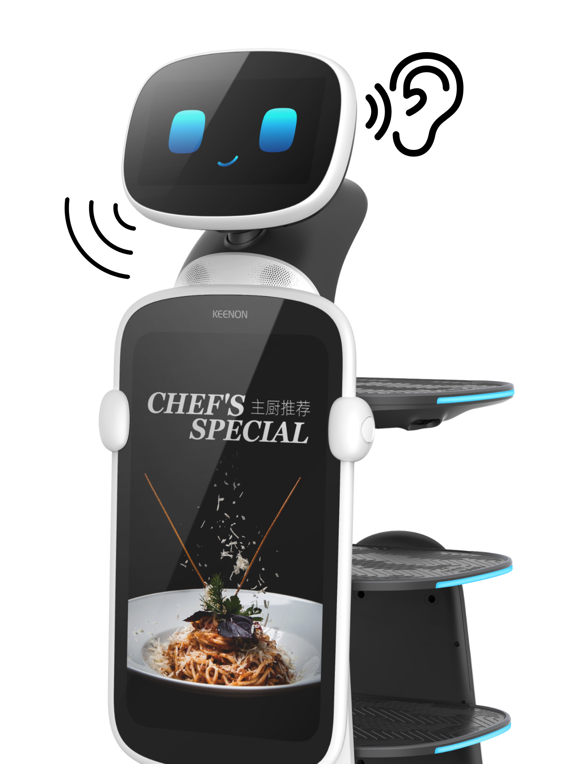 Der T10-Roboter ist mit einem 23,8-Zoll-Werbebildschirm ausgestattet, der sich ideal für die Präsentation der Speisekarte, Tagesgerichte, Werbeaktionen und anderer Informationen eignet. Dies bietet eine attraktive und effektive Möglichkeit, Gäste zu informieren und Zusatzverkäufe anzuregen.